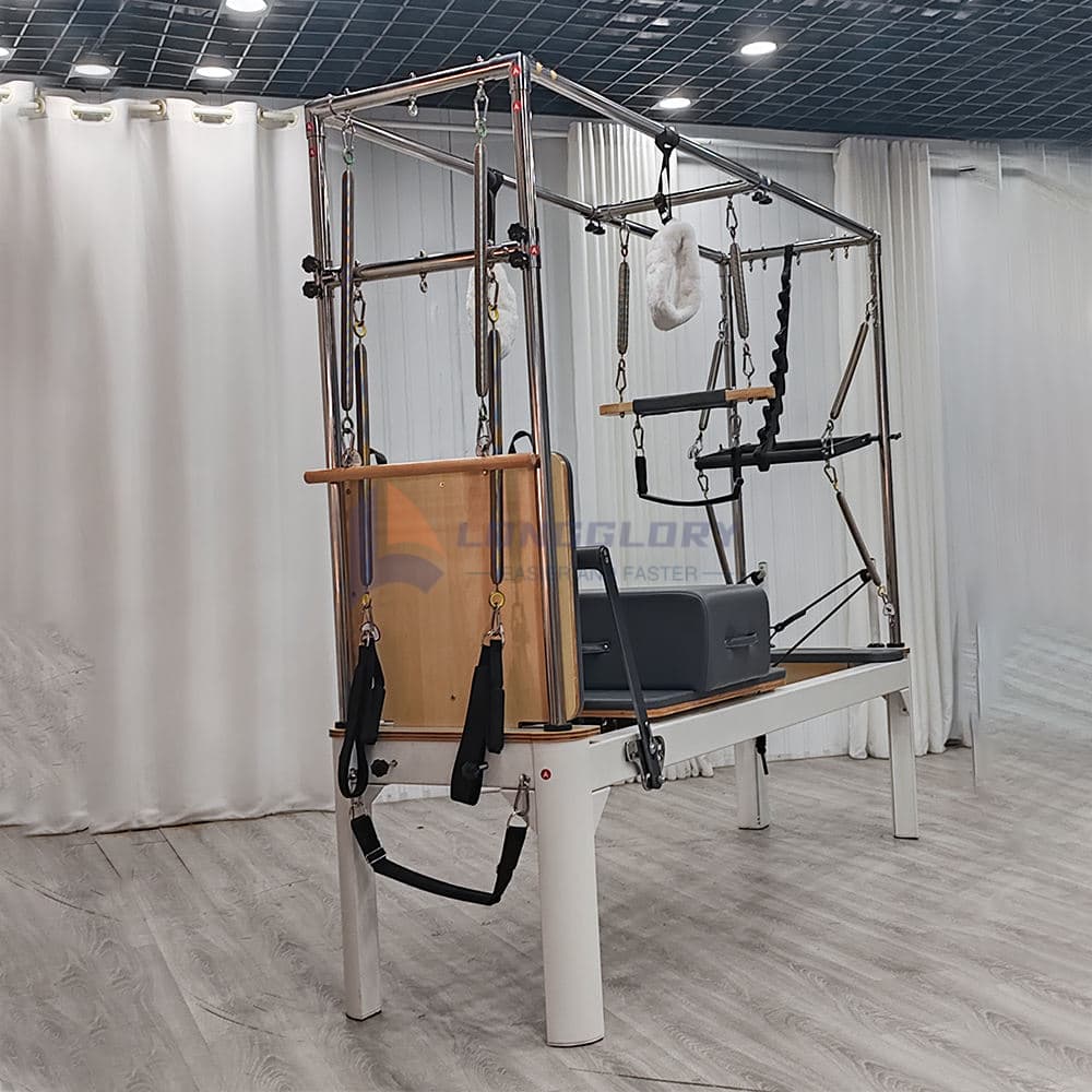వాణిజ్య ఉపయోగం కోసం లేదా ప్రైవేట్ ప్రాక్టీస్ కోసం, అల్యూమినియం త్రీ ఇన్ వన్ Pilates కాడిలాక్ రిఫార్మర్ ప్రొఫెషనల్ పనితీరు, బహుముఖ శిక్షణా విధులు మరియు పూర్తి-శరీర కండిషనింగ్ మరియు Pilates థెరపీ కోసం దీర్ఘకాలిక నిర్మాణాన్ని అందిస్తుంది.