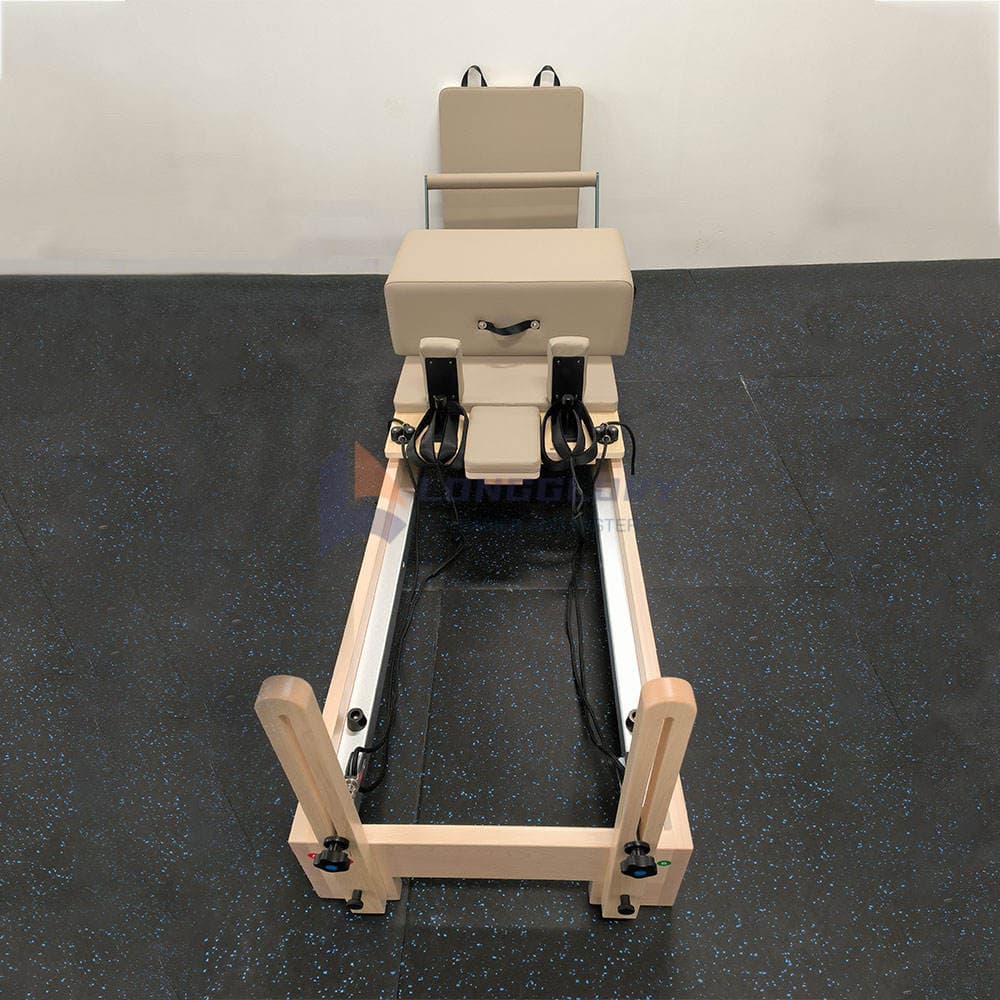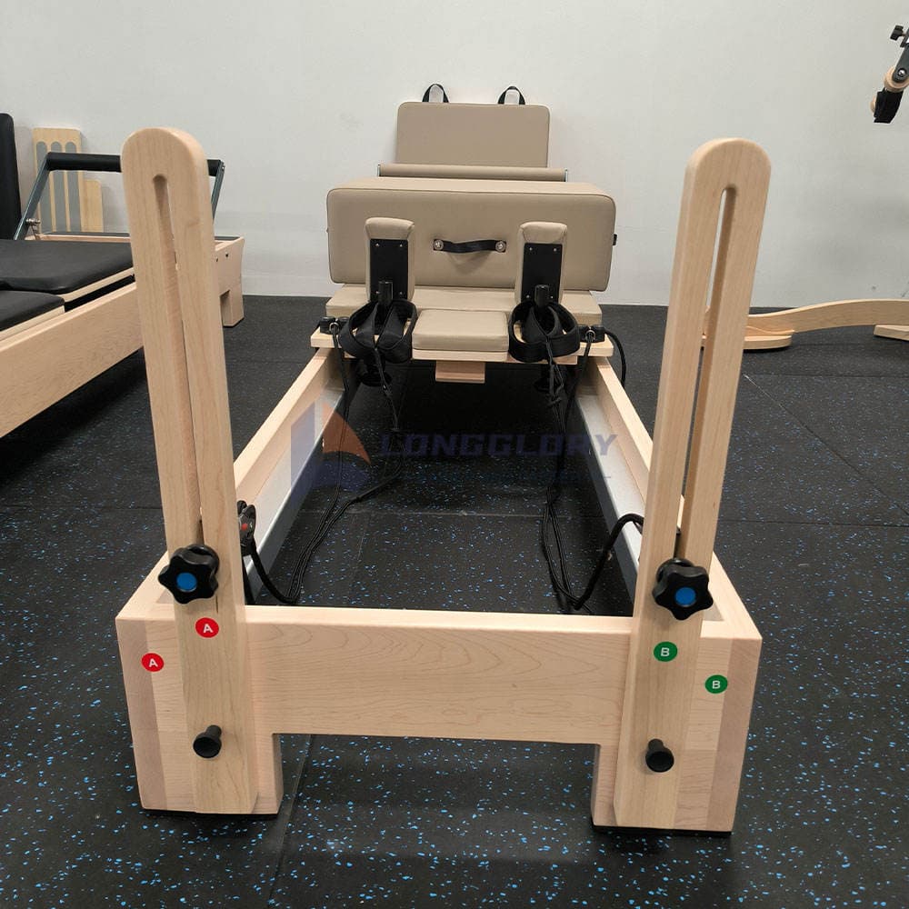 ప్రారంభ మరియు నిపుణుల కోసం రూపొందించబడిన, మల్టీఫంక్షనల్ మాపుల్ వుడ్ పైలేట్స్ కోర్ బెడ్ అబ్స్, కాళ్ళు, వీపు, గ్లూట్స్ మరియు మొత్తం శరీర సమన్వయం కోసం వ్యాయామాలకు మద్దతు ఇస్తుంది. దీని బహుముఖ డిజైన్ వినియోగదారులను క్లాసిక్ Pilates కదలికలు మరియు అధునాతన కోర్ వర్కౌట్లను సున్నితమైన పరివర్తనలు మరియు సురక్షిత మద్దతుతో నిర్వహించడానికి అనుమతిస్తుంది.