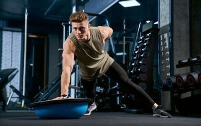1. మీ శరీరాన్ని నిటారుగా ఉంచండి, పుష్-అప్ స్థానంలో ఉండండి. మీ పై శరీరాన్ని బోసు బంతికి ఒక వైపు ఉంచండి, ఫ్లాట్ వైపు మీ చేతులతో మిమ్మల్ని మీరు మద్దతు ఇవ్వండి. ఇది ప్రారంభ స్థానం.